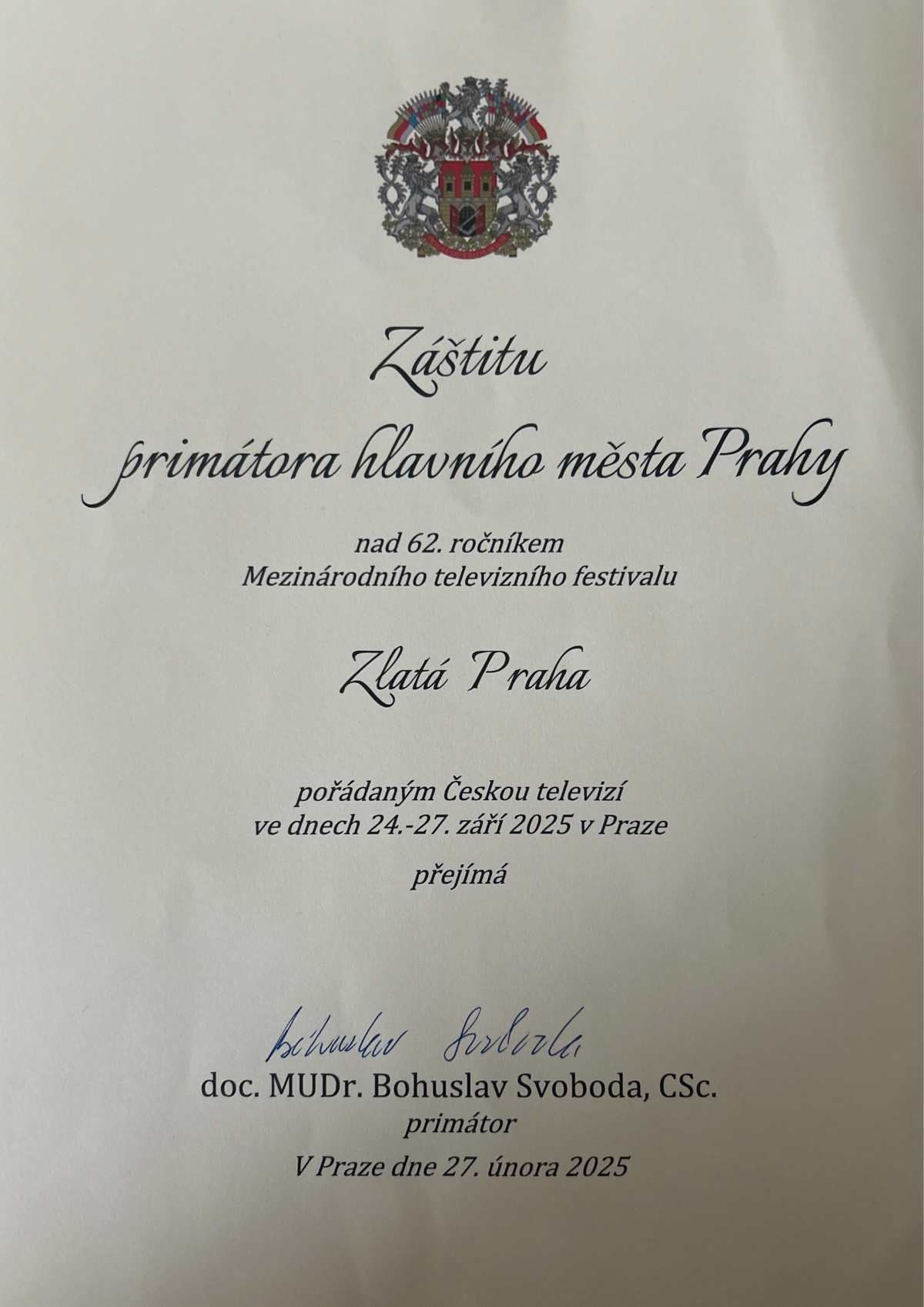 Skvělá zpráva pro všechny milovníky špičkové audiovizuální tvorby! Doc. MUDr. Bohuslav Svoboda, CSc., primátor hlavního města Prahy, převzal osobní záštitu nad 62. ročníkem Mezinárodního televizního festivalu Zlatá Praha.